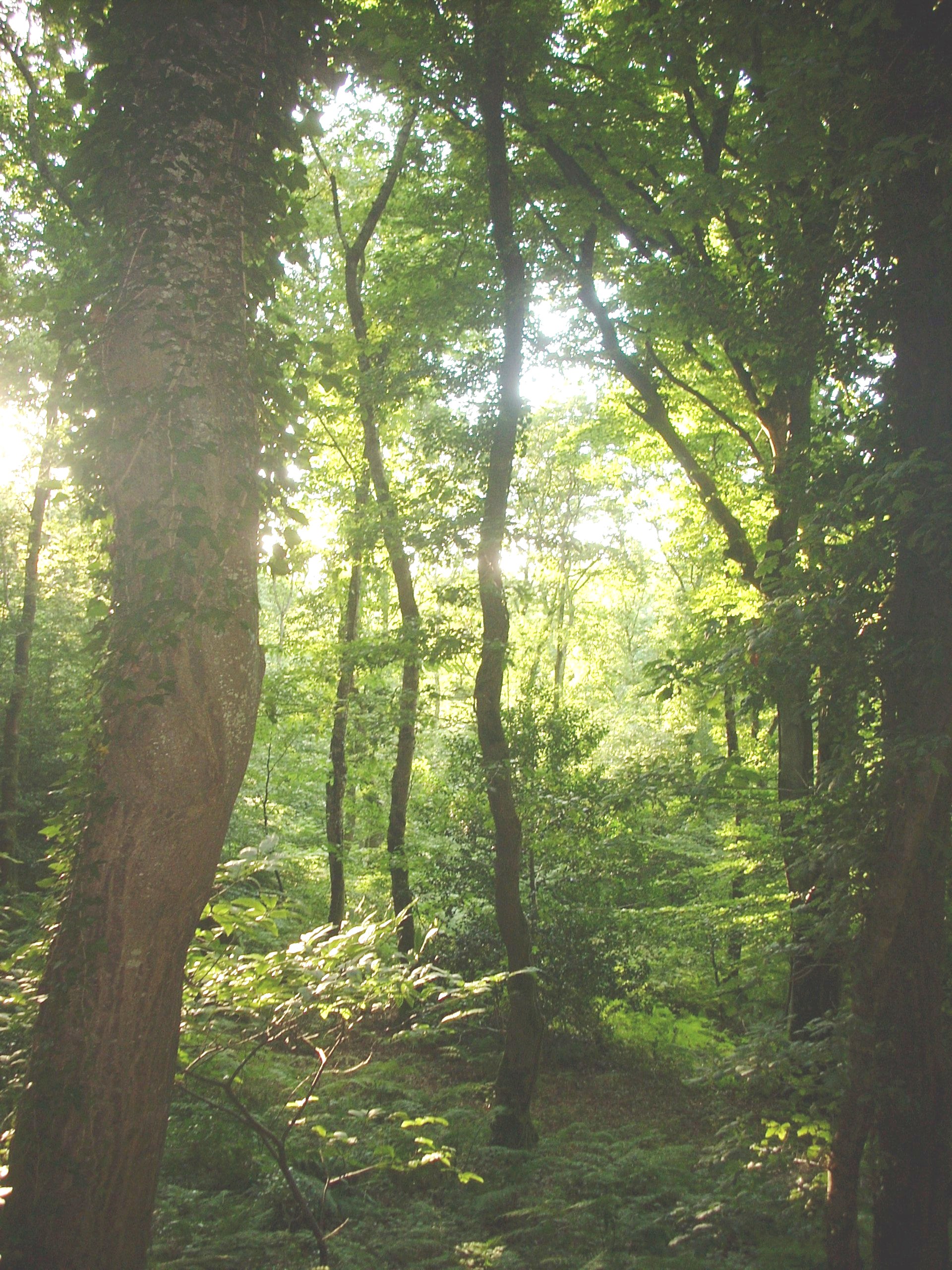 I stop at a road sign that says “Le Raby,” and take a photo of a serene forest scene in which the late sun streams through the branches of the trees, creating a mythical atmosphere worthy of King Arthur.