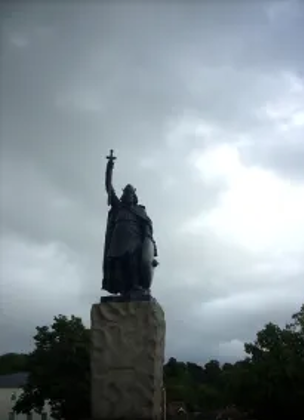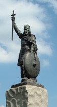I join up with High Street and come across a statue the Veteran told me about—but it is not King Arthur, as he suggested. It is a statue of King Aelfred, the great Anglo-Saxon king!
